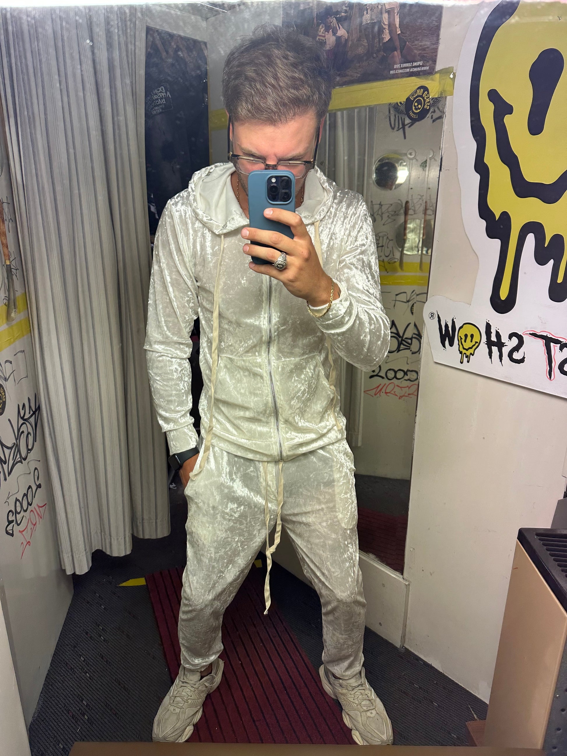 Coordinato vegas vestibilita aderente tessuto ciniglia.