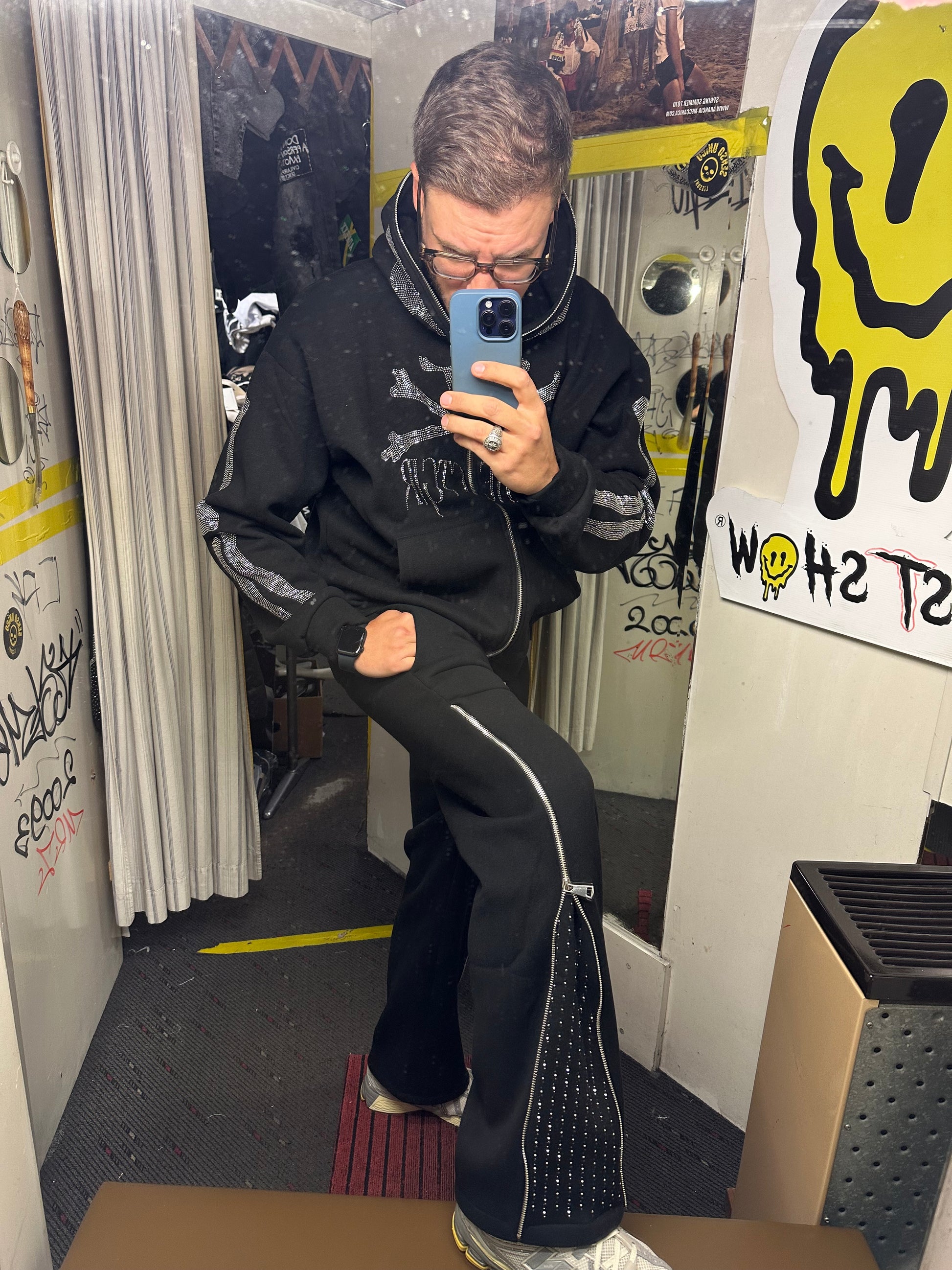 Panta tuta felpato con zip e brillanti