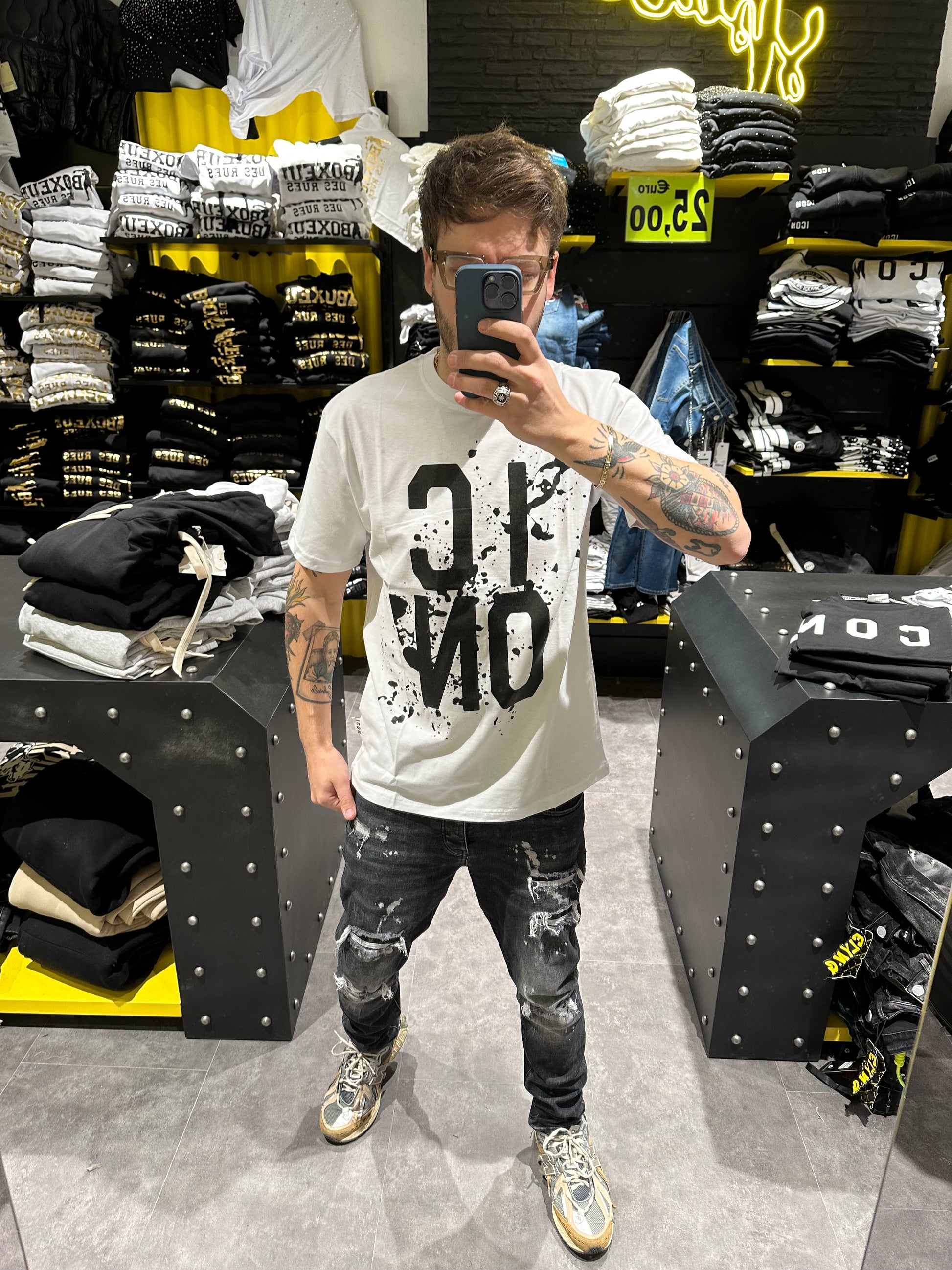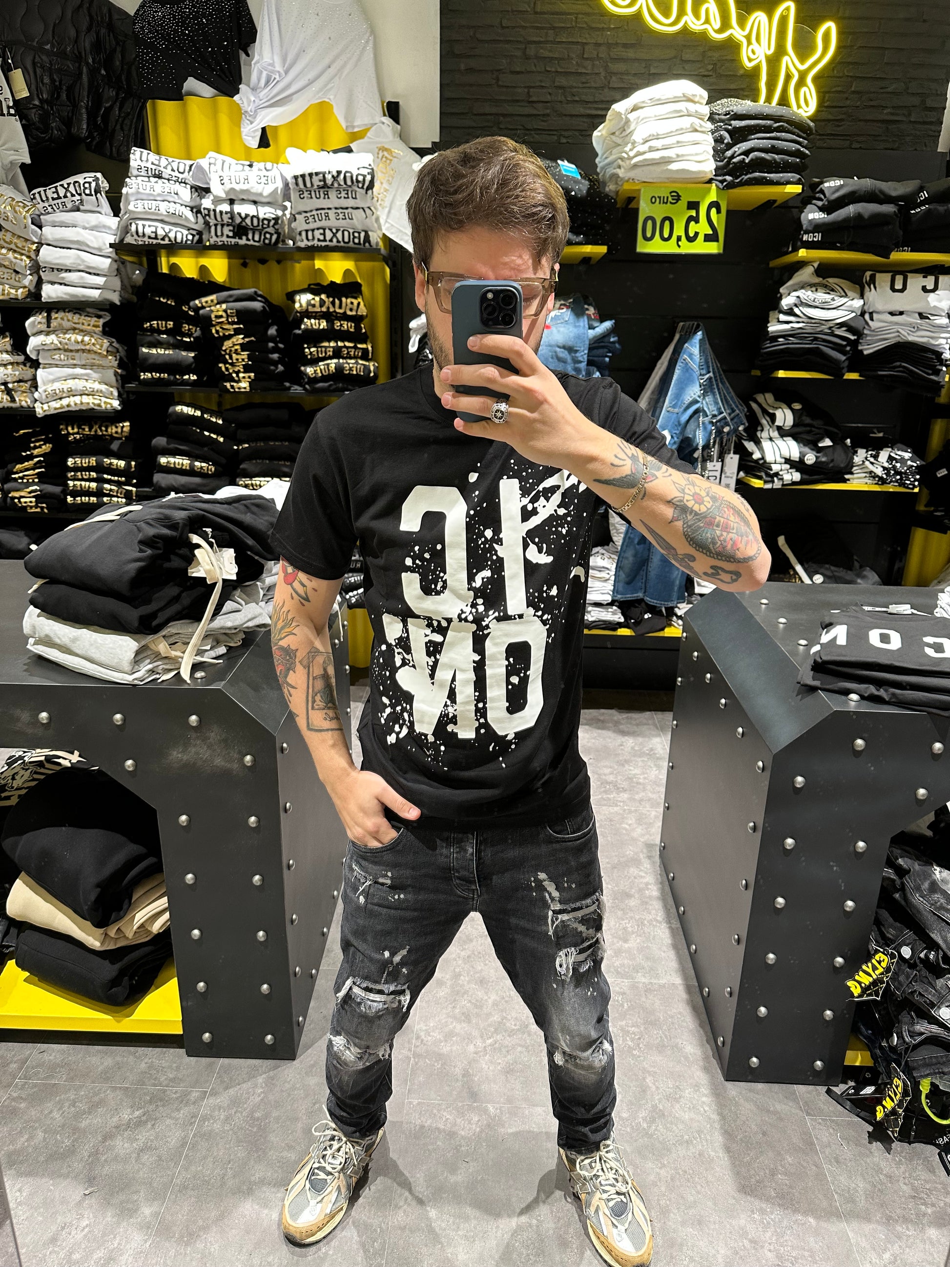 T-shirt Icon con spruzzo painting. Il prezzo indicato è già scontato da cartellino